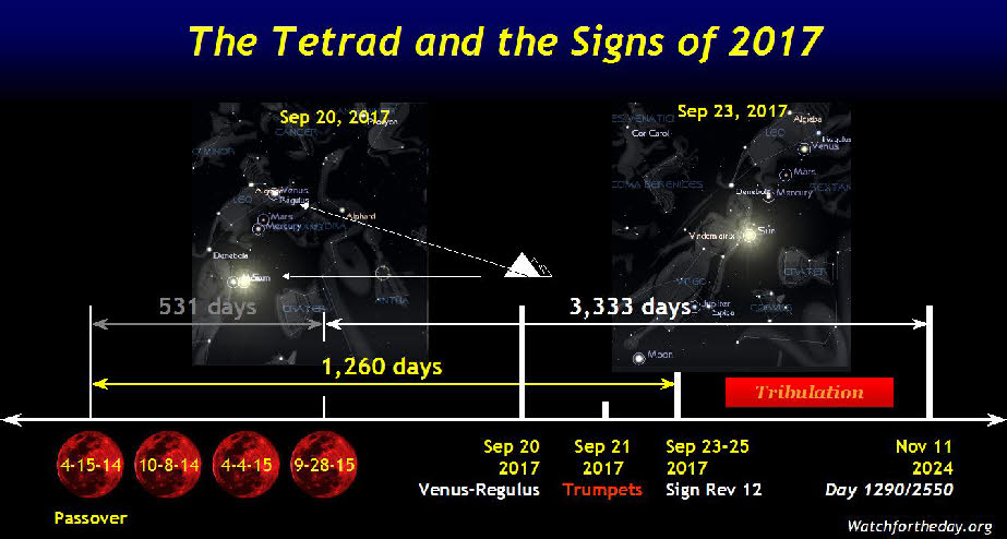 Vuosina 1967 - 1968 oli Kuudenpäivän sota. Seitsemän arabivaltiota hyökkäsi jokaiselta rajalta Israelin kimppuun tavoitteenaan työntää juutalaiset mereen. Sota päättyi ihmeellisesti 650 000 hengen valtion ja 35 000 sotilaan armeijan voittoon lukumäärällisesti valtavasti suurempaa vihollista vastaan. Israelilaiset saivat Jerusalemin takaisin 2000 vuoden jälkeen. Se tapahtui Tetradin aikaan, yksi jubilee-vuosi taaksepäin syksystä 2015.